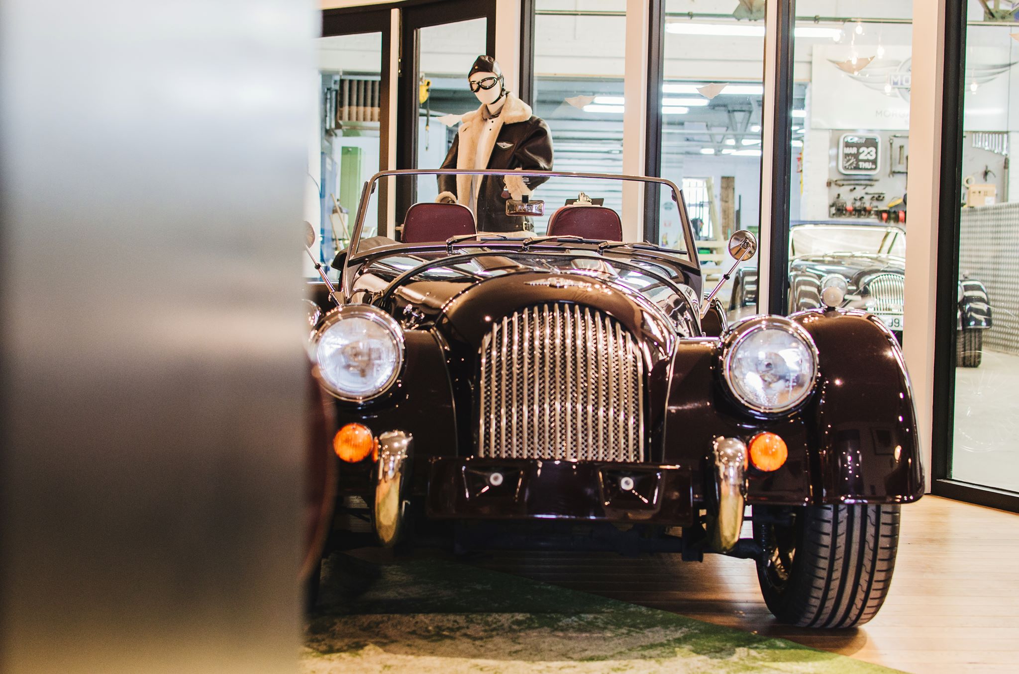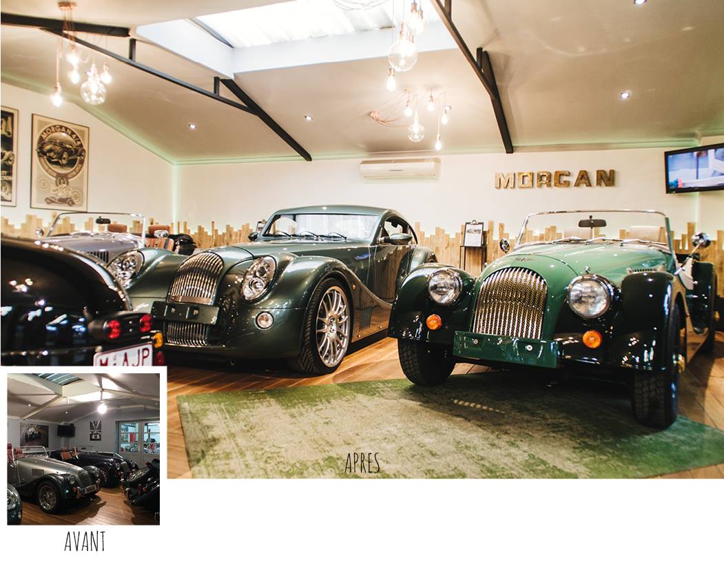 Description de l’ambiance souhaitée : Le client désire mettre en évidence le côté vintage des voitures Morgan, tout en reprenant la modernité de leur fabrication.